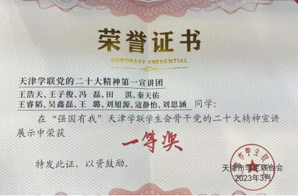 在本月初团市委👨🏿🦱、市学联举办的天津学联学生会骨干学习党的二十大精神专题培训班上🧑⚖️,刘思涵同学深刻领会了习近平新时代中国特色社会主义思想和习近平总书记关于青年工作重要思想的精神实质和丰富内容,自身的理论素养🧑🏿🦳、研究能力和实践水平都有了大幅提升✡️,在培训班宣讲汇演中获得一等奖🗾。