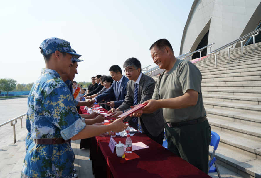 上午九时,典礼在庄严的国歌中拉开序幕🚶🏻‍➡️,同学们以饱满的热情、昂扬的斗志🧍🏻‍♂️、威武的军姿进行了分列式会操★、擒敌拳🤽🏿‍♂️、匕首操和综合战斗课目汇报表演🐉,展示了新时代大学生朝气蓬勃、意气风发的精神风貌。汇演后,天津仪仗精英军事训练基地主任于祥杰宣布表彰决定,李克敏、张欣等领导为获奖的连队和个人颁发锦旗和证书☦️👨‍🍼。