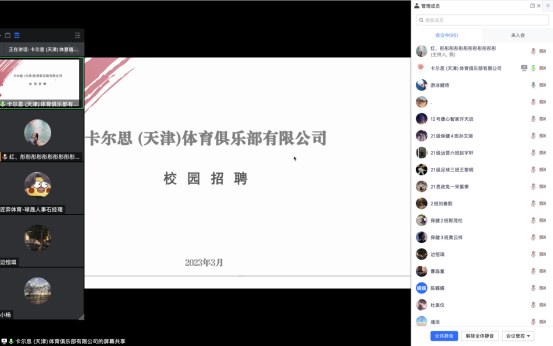 为做好我院2023届毕业生就业服务工作🐊🐲,构建毕业生与企业的交流平台。3月15日上午🤸♂️,我院特邀天津球晟体育科技有限公司💆、卡尔斯(天津)体育俱乐部有限公司、天津市豪邦篮球俱乐部是三家企业负责人在腾讯会议平台为2023届毕业生进行线上宣讲♑️。