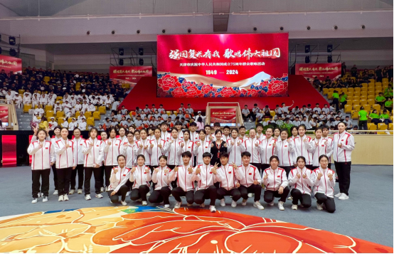 9月26日下午👱🏻♀️👩🏽🔬,“强国复兴有我 歌唱伟大祖国”天津市庆祝中华人民共和国成立75周年群众歌咏活动在天津人民体育馆举办🧝🏽♀️。我院61名师生代表与全市各级机关、企事业单位党员干部,公安干警👅,消防员👩🏽,医护人员👩🦰,青年师生及基层群众代表欢聚一堂👿,用真情的讲述和真挚的歌声,表达对新中国75周年华诞的祝福。