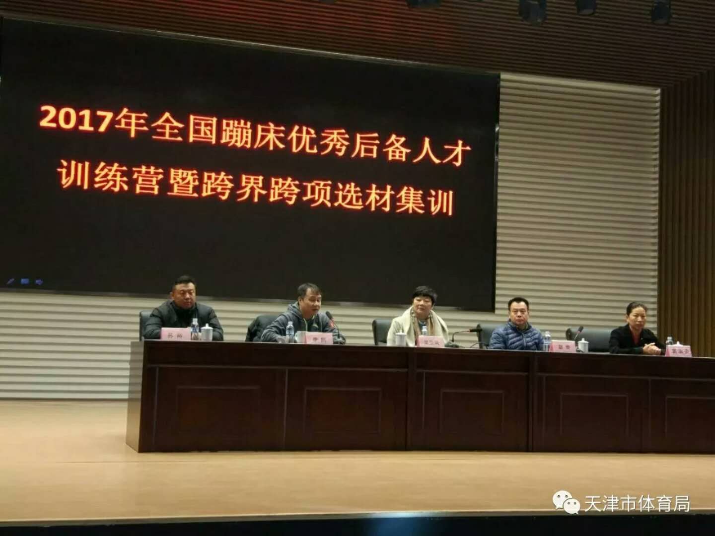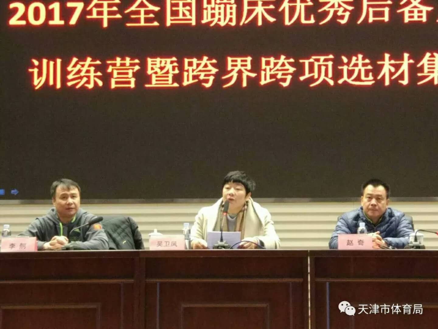 11月24日上午🏌🏻♂️,2017年全国蹦床优秀后备人才训练营暨跨界跨项选材在团泊体育中心举行开营仪式♓️。天津市体育局副巡视员吴卫凤,国家体育总局体操运动管理中心蹦床部部长李舸,天津市体操运动管理中心主任赵奇、副主任窦淑云、苏裕出席了开营仪式👳🏼♀️。